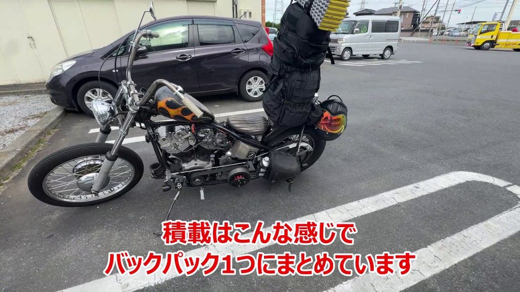 連休で時間が取れたのでショベルでソロキャンプに行きます。