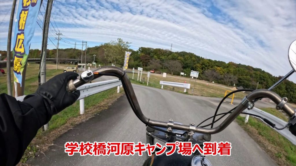 自宅から約1時間半ほどで学校橋河原キャンプ場へ到着。