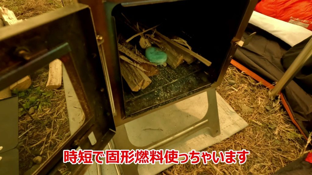 時短で100均の固形燃料を使い、一瞬で着火します。