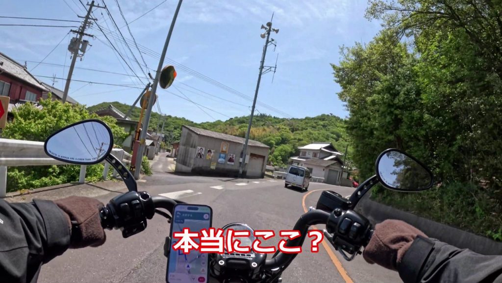 道幅もとても狭く、すれ違うのも精一杯な道。