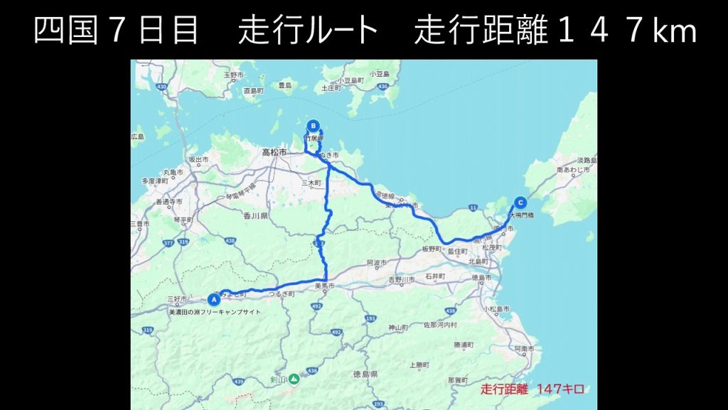 本日7日目の四国での走行は147キロ。